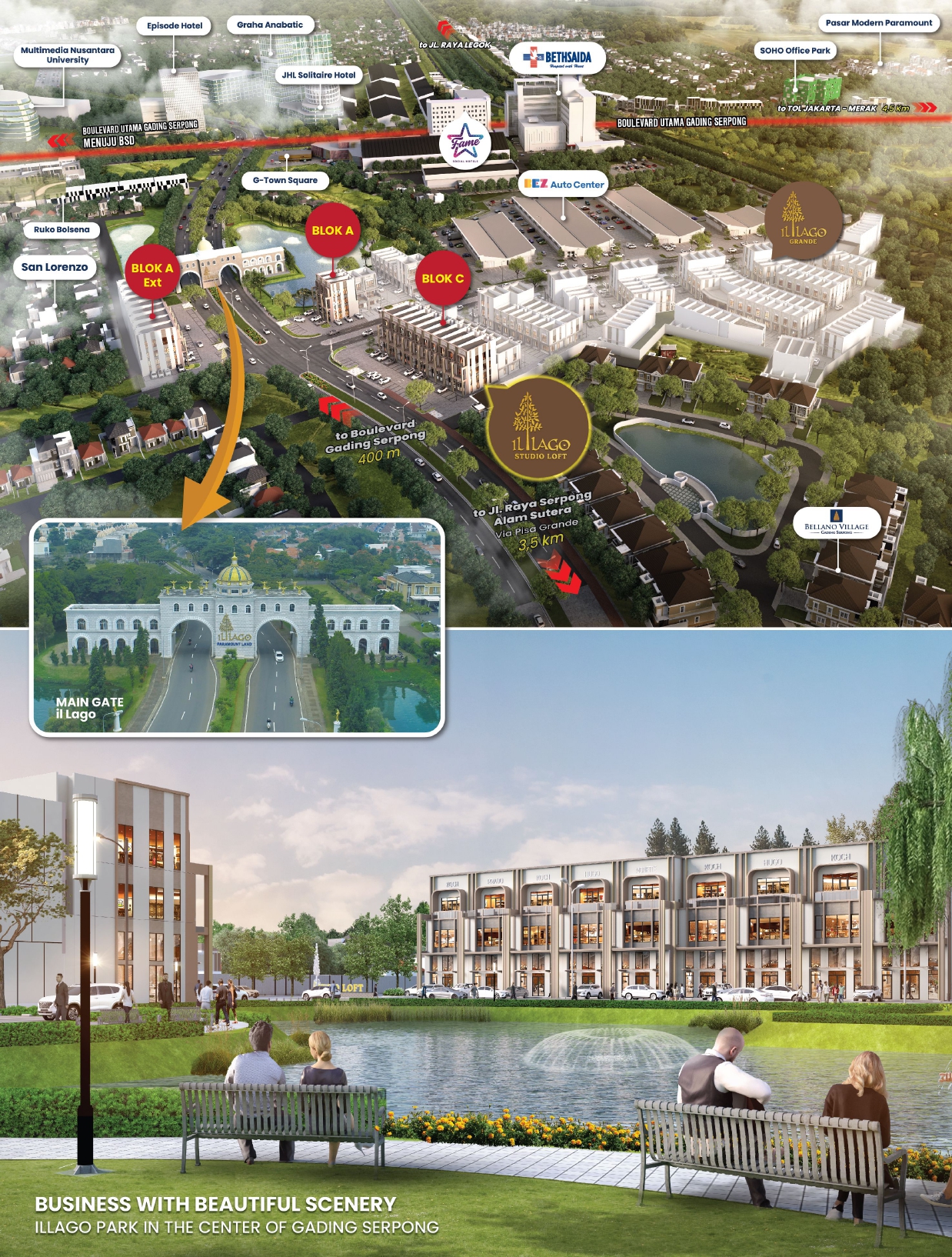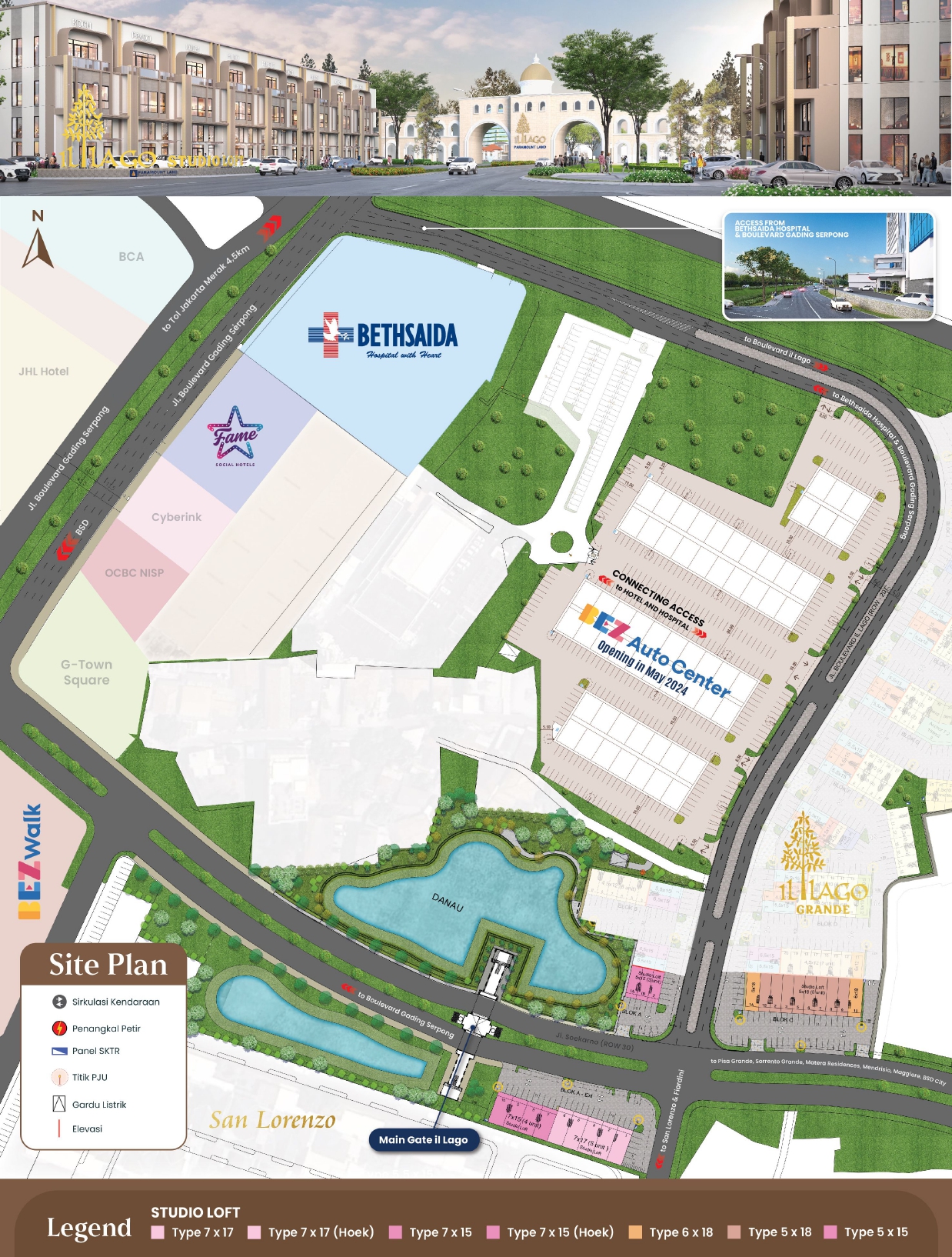 Terkoneksi dengan kawasan komersil lainnya, seperti Menteng Studio Loft dengan akses utama ROW 20 yang terkoneksi dengan jalan Boulevard Gading Serpong ROW 45; Menjadikan iL Lago Studio Loft berada kawasan strategis dengan Value Investment yang tinggi sekaligus sebagai area komersial yang ramai dan diminati.