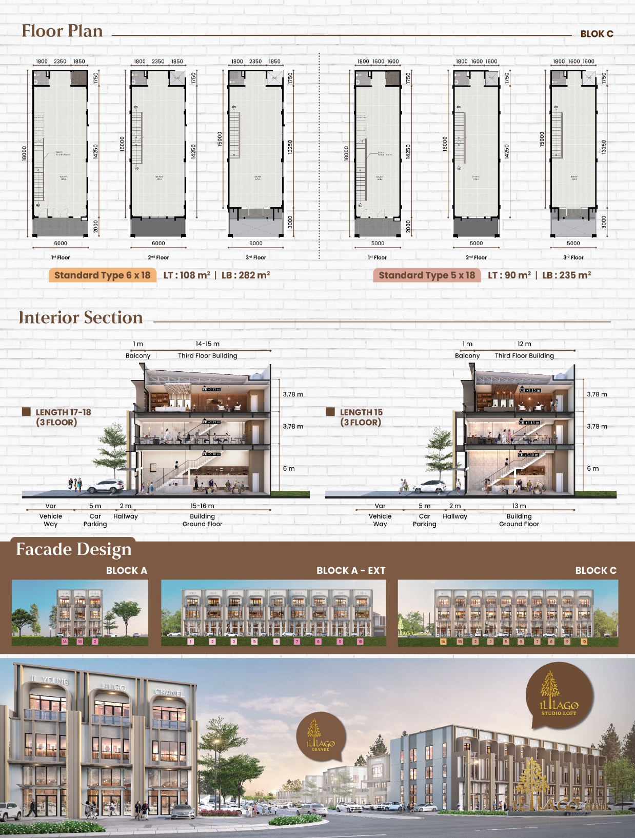 iL Lago Studio Loft tipe standard terdiri dari 3 lantai dengan luas tanah 90m2 dan luas bangunan mencapai 235m2.