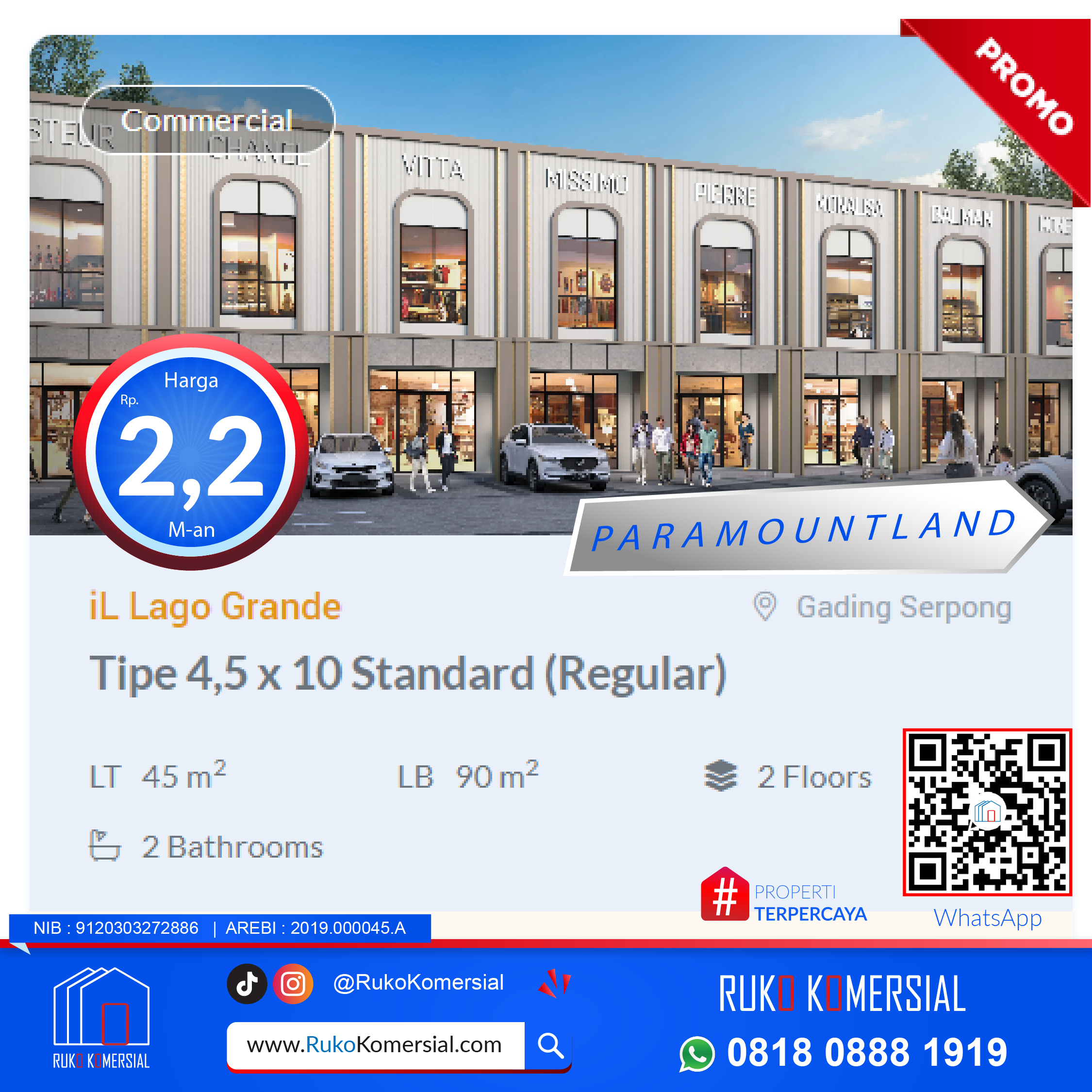 Ruko iL Lago Grande Tipe 4,5×10 Standard Paramountland Gading Serpong Tangerang - Jalan Boulevard IL Lago. Serpong, Gading Serpong, Kandang, Lengkong Kulon, Pagedangan, Tangerang Regency, Banten, Java, 15339, Indonesia