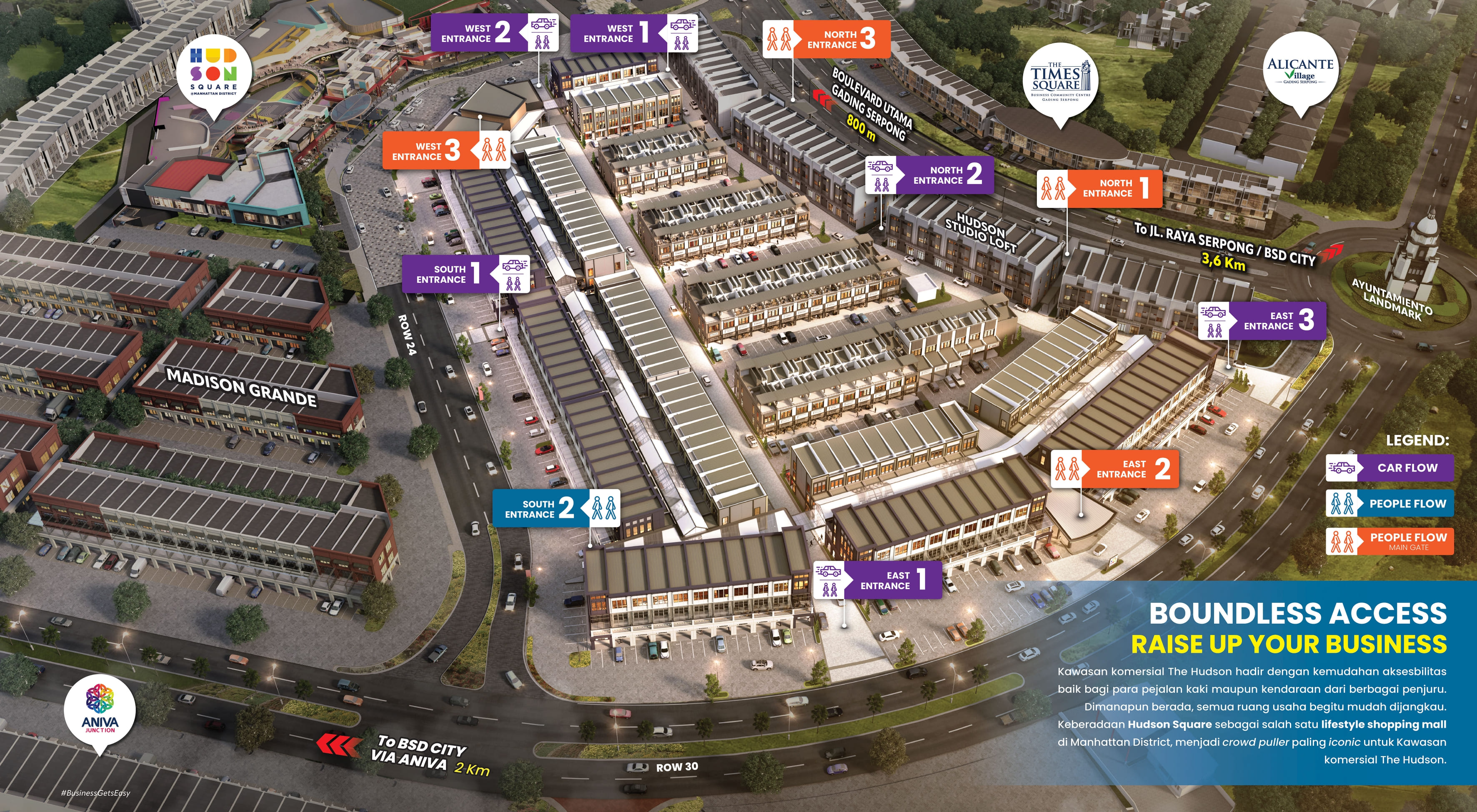 Mengusung konsep “One Stop Shopping” yang menawarkan Multi Experience dengan ragam bisnis seperti F&B, Hobby, Sport, Fashion, dan Entertainment; The Hudson hadir dalam wujud 3 lantai dengan 2 pilihan tipe, yakni tipe 4,5mx18m dan 4,5mx15m.