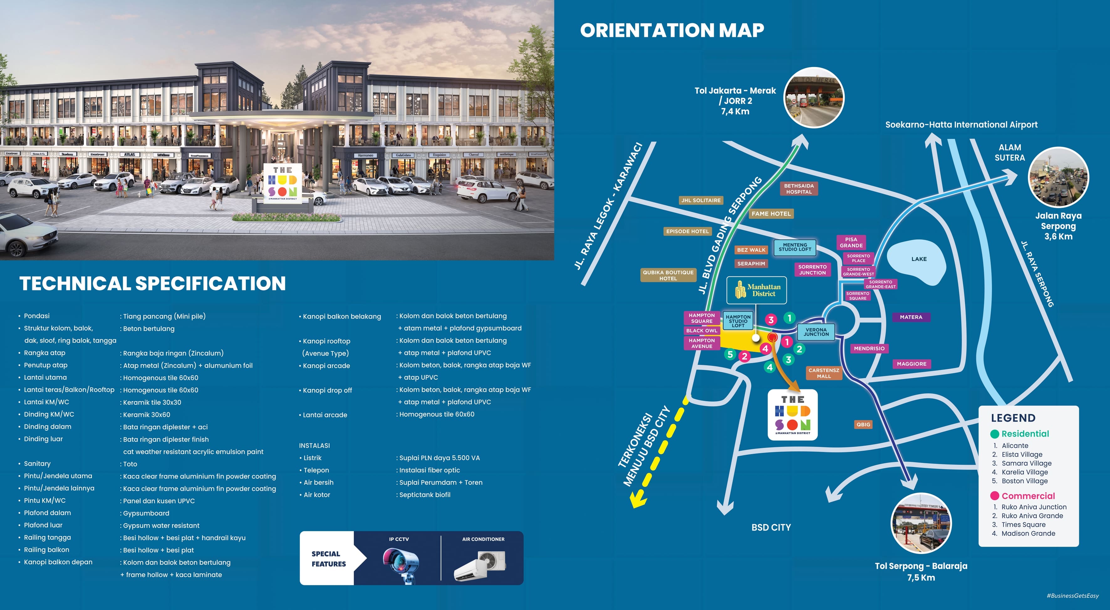 Mengusung konsep “One Stop Shopping” yang menawarkan Multi Experience dengan ragam bisnis seperti F&B, Hobby, Sport, Fashion, dan Entertainment; The Hudson hadir dalam wujud 3 lantai dengan 2 pilihan tipe, yakni tipe 4,5mx18m dan 4,5mx15m.